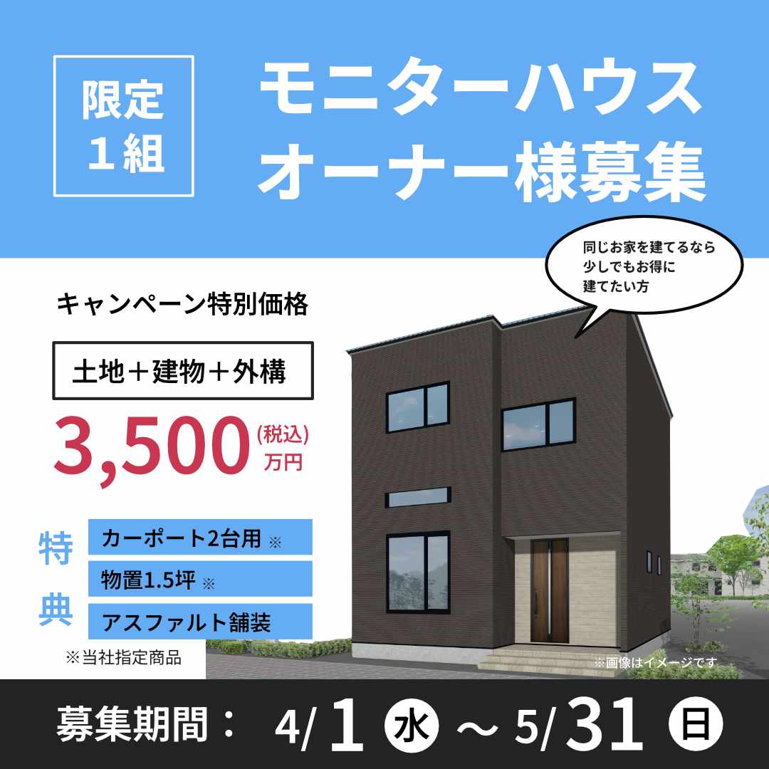 モデルハウスとして活用させていただく分、特別価格でお家をご提供